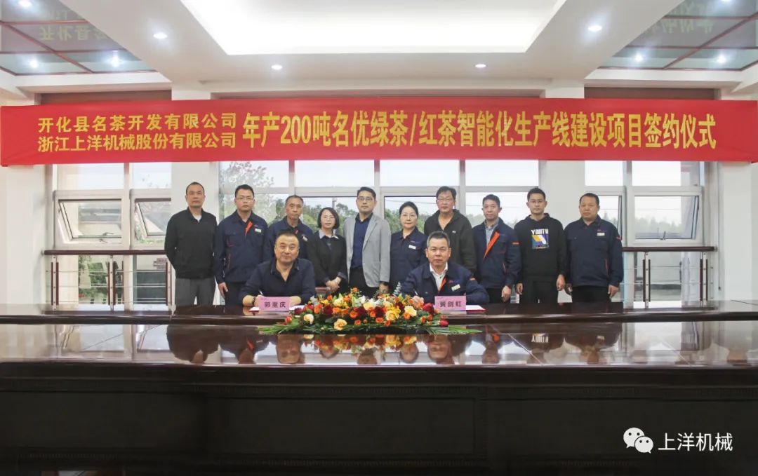 10月24日,開化名茶開發(fā)有限公司與上洋機械正式簽約“年產(chǎn)200噸名優(yōu)綠茶/紅茶智能化生產(chǎn)線”建設(shè)項目。